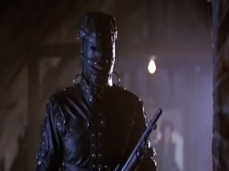 Dad, however, is simply amazing. He looks every bit the perverted pastor, and he runs with the prejudice to amazing heights. His role is to be the muscle, and much of his time on screen is spent storming through the house and blasting holes in the walls with a shotgun. Even better, he does much of the rampaging in a full-body leather Gimp suit. Fantastic.