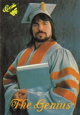 When I was a young wrestling fan, one of the wrestlers who creeped me out most was Lanny Poffo, known to me as the villainous valedictorian, The Genius. With his Prince Valiant bowl cut, his frightening pedo-stache, and his sinister leer, Poffo cut a villainous figure on appearance alone. Combining this with his propensities to prance around in a graduation gown and recite foppish bad guy poetry made him one of pro wrestling’s legendary creeps.